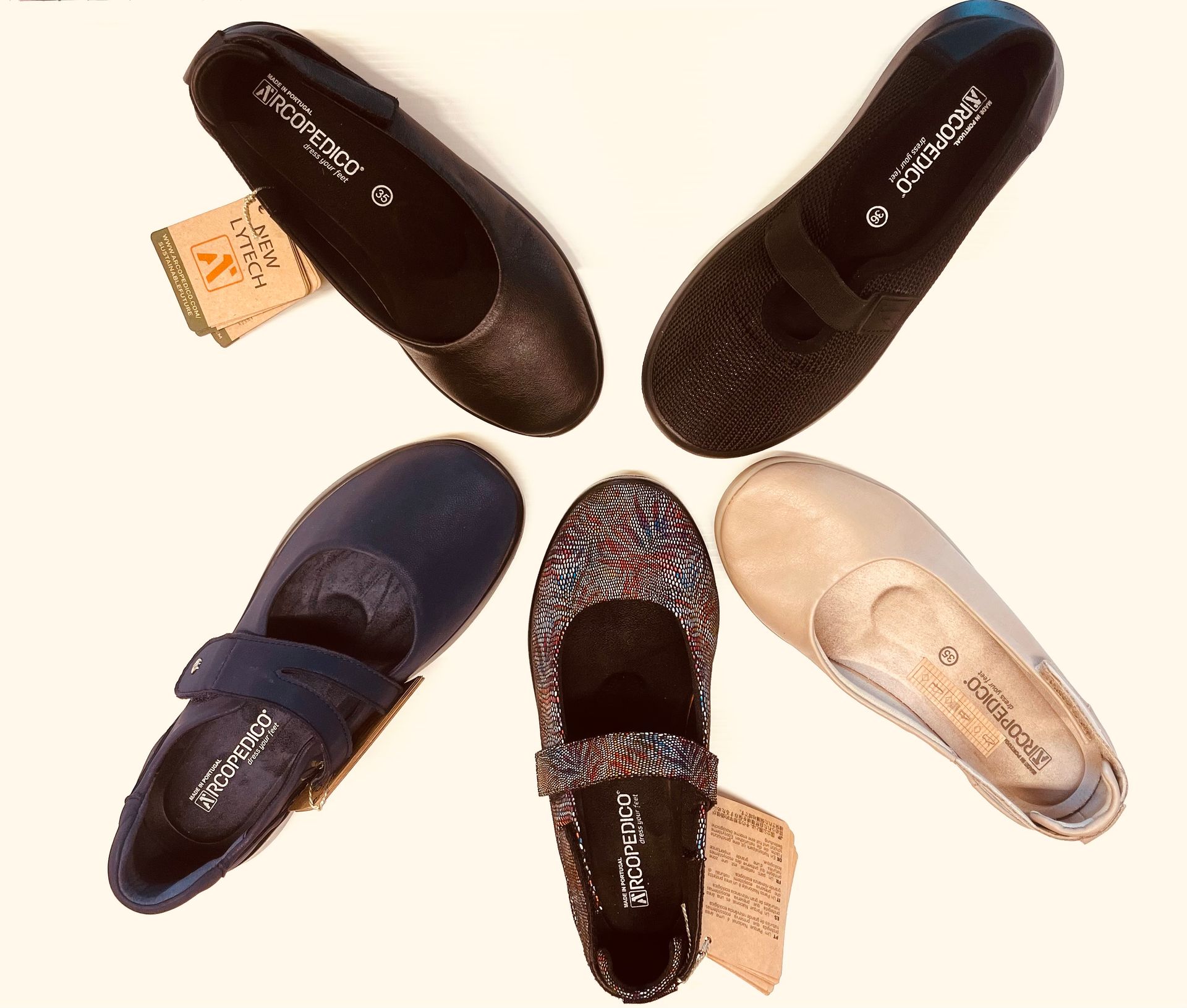 Disponibili numerosi modelli con inserimento plantare.